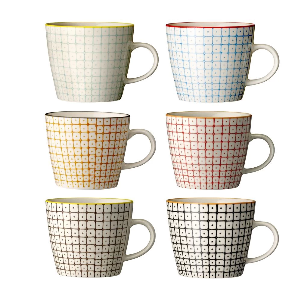 Diese 8,3cm hohe Tasse aus Bloomingvilles beliebter Carla Kollektion wird im 6er Pack geliefert, welcher diese Tasse in sechs verschiedenen Farbkombinationen enthält. Dieses farbenfrohe, grafisch gestaltete Porzellan bringt Leben auf den Tisch!
