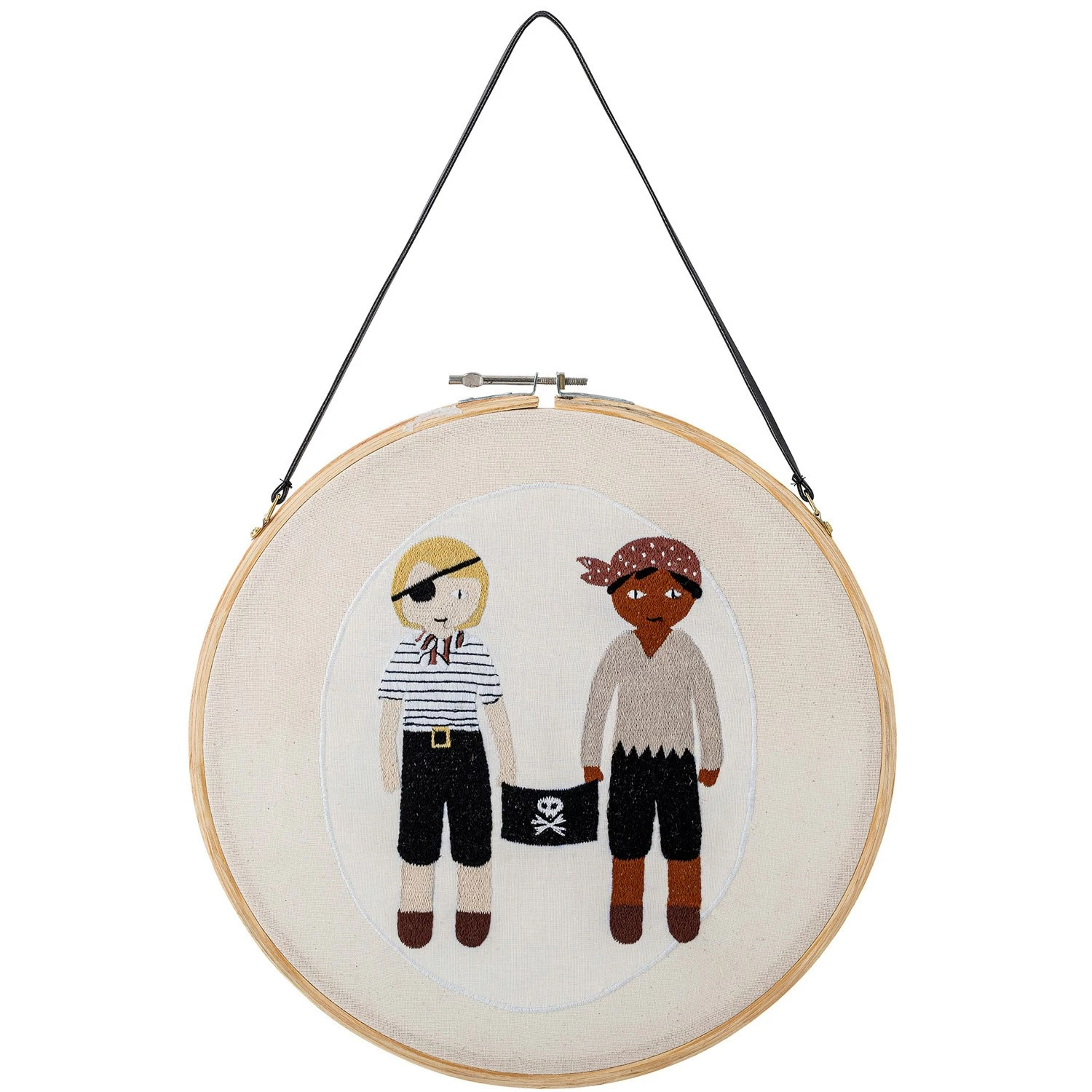 Die Wanddekoration von Bloomingville hat ein hübsches Design mit einem gestickten Motiv und einem Rahmen aus Kiefernholz perfekt für das Kinderzimmer.