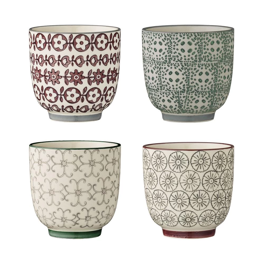Diese kleinen Becher aus Bloomingvilles Karine Kollektion werden im 4er Pack geliefert, welcher diesen 7cm im Durchmesser messenden Becher in vier verschiedenen Farbstellungen enthält. Dieses farbenfrohe, grafisch gestaltete Porzellan bringt Leben auf den Tisch!