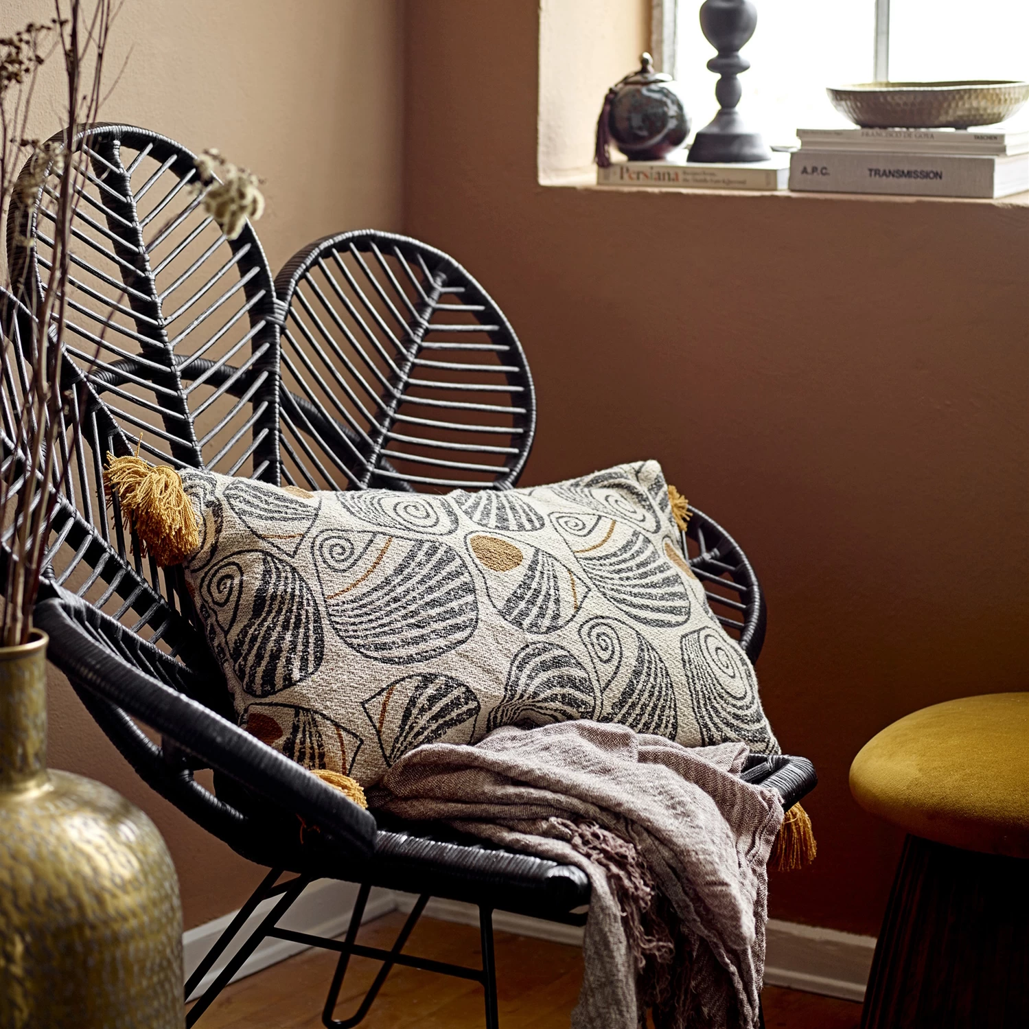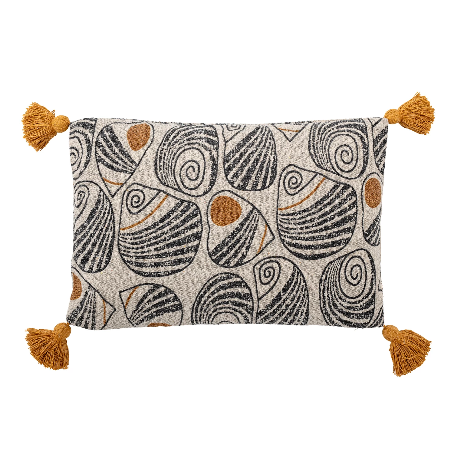 Das Bloomingville Kissen beeindruckt mit seinem unkonventionellen Design und den gelben Quasten an den Kissenecken. Platzieren Sie es als einladendes Detail auf dem Sofa oder als krönenden Abschluss auf dem Bett. Das Modell eignet sich für den eleganten Look zur Kombination mit einfarbigen Kissen, die das Design in den Mittelpunkt stellen oder mit anderen gemusterten Kissen für eine verspielte Gestaltung.