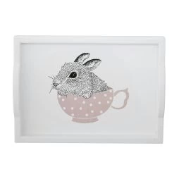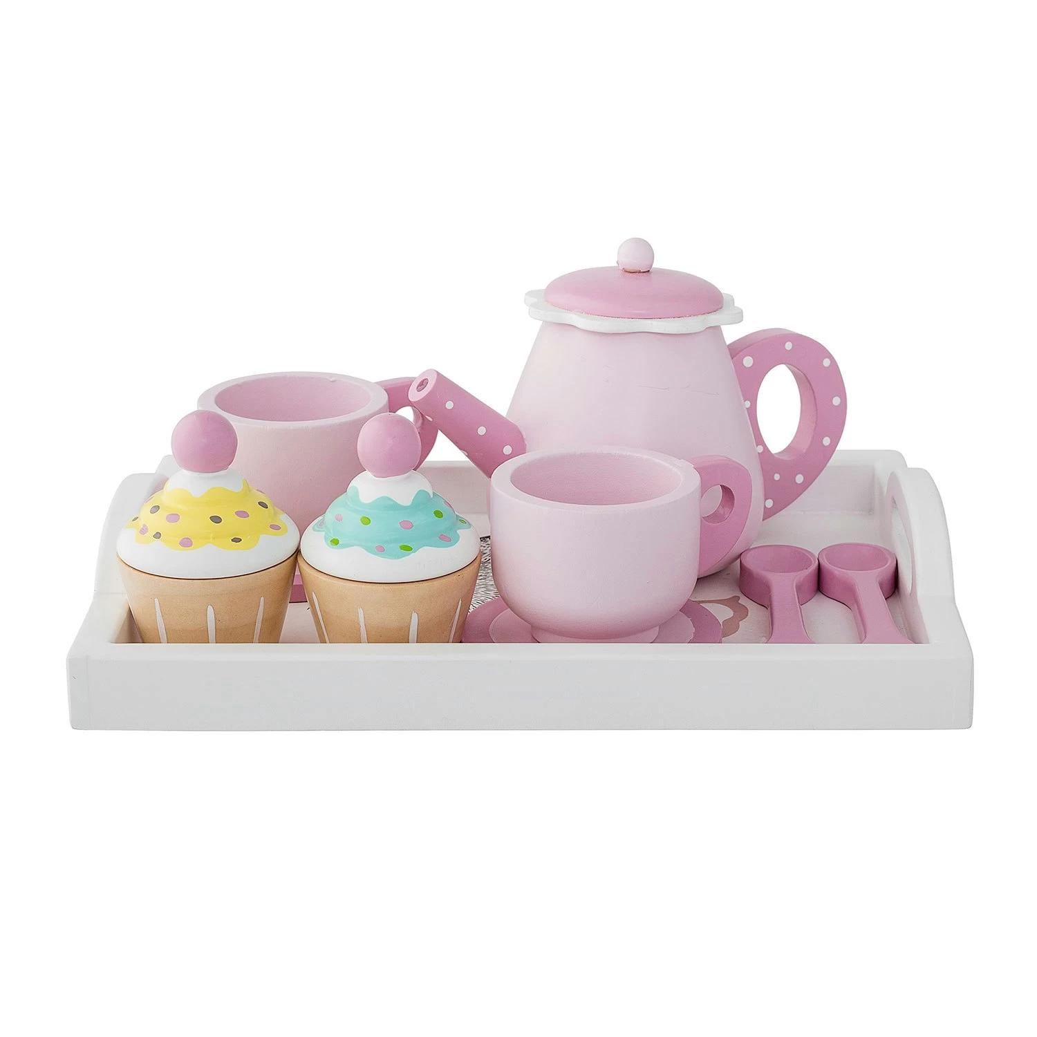 Spielset von Bloomingville. Ein schönes Set, das alles enthält, was du für eine Teeparty brauchst. Es enthält eine Teekanne, zwei Tassen, zwei Löffel, zwei Muffins und ein Tablett mit einem Kaninchenmotiv. Perfekt für jüngere Kinder geeignet. Das Spielset ist stilvoll und wird zu einem schönen Hingucker im Kinderzimmer. Empfohlen für Kinder ab drei Jahren.