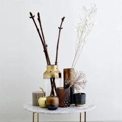 Dieser handgefertigte Blumentopf der dĂ€nischen Marke Bloomingville ist aus glasiertem Steinzeug gefertigt und ĂŒberzeugt mit seinem einzigartigen Muster und seiner goldfarbigen Basis.