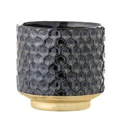 Dieser handgefertigte Blumentopf der dĂ€nischen Marke Bloomingville ist aus glasiertem Steinzeug gefertigt und ĂŒberzeugt mit seinem einzigartigen Muster und seiner goldfarbigen Basis.